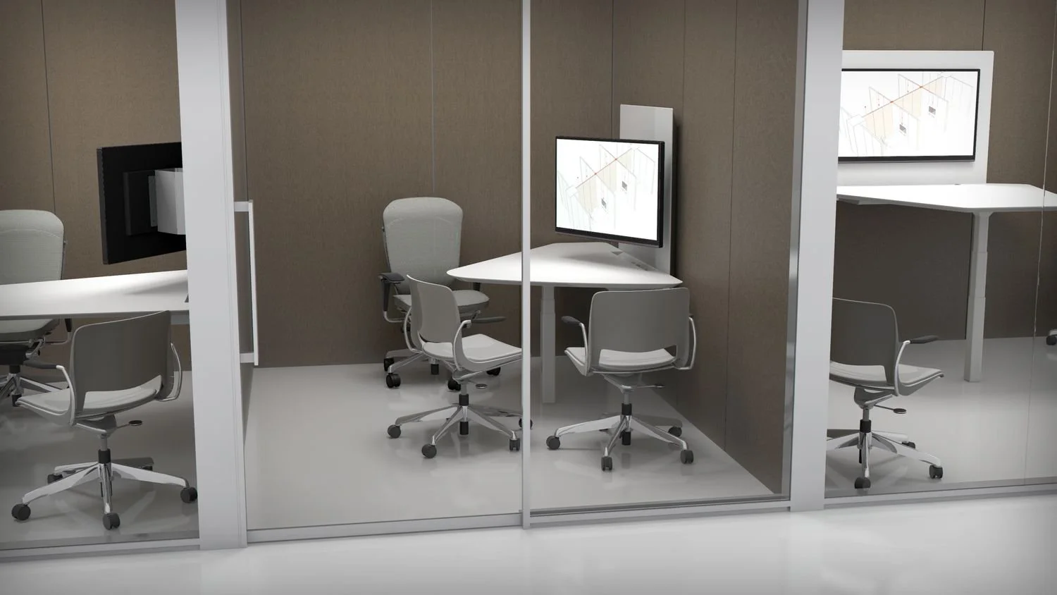Tek Pier is a wall-integrated, height-adjustable work surface and monitor combination. Mounting to an Altos frame, hidden sit-stand actuators enable height adjustability, while an articulating monitor arm adjusts for individual group or collaboration.